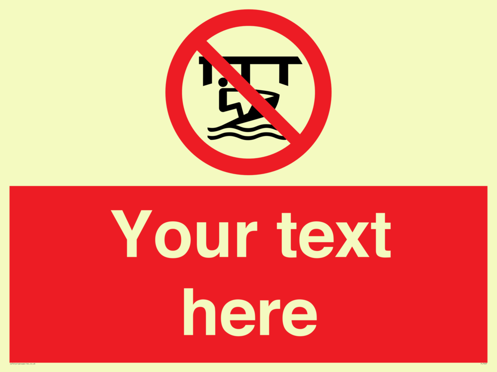 Suitable for mounting on a door. Suitable for mounting on cladding. This product is design to be mounted on the ceiling. Custom signs contain the text required by the customer. With your your text and a standard safety sign symbol - a bespoke sign can fit any requirement.