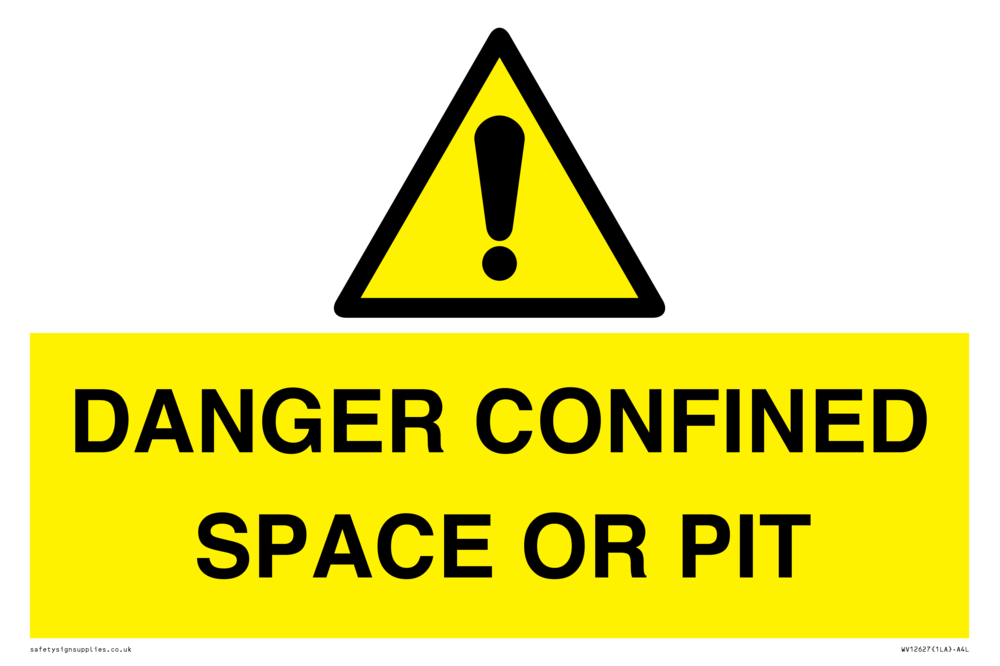 Sign Text: DANGER CONFINED SPACE OR PIT