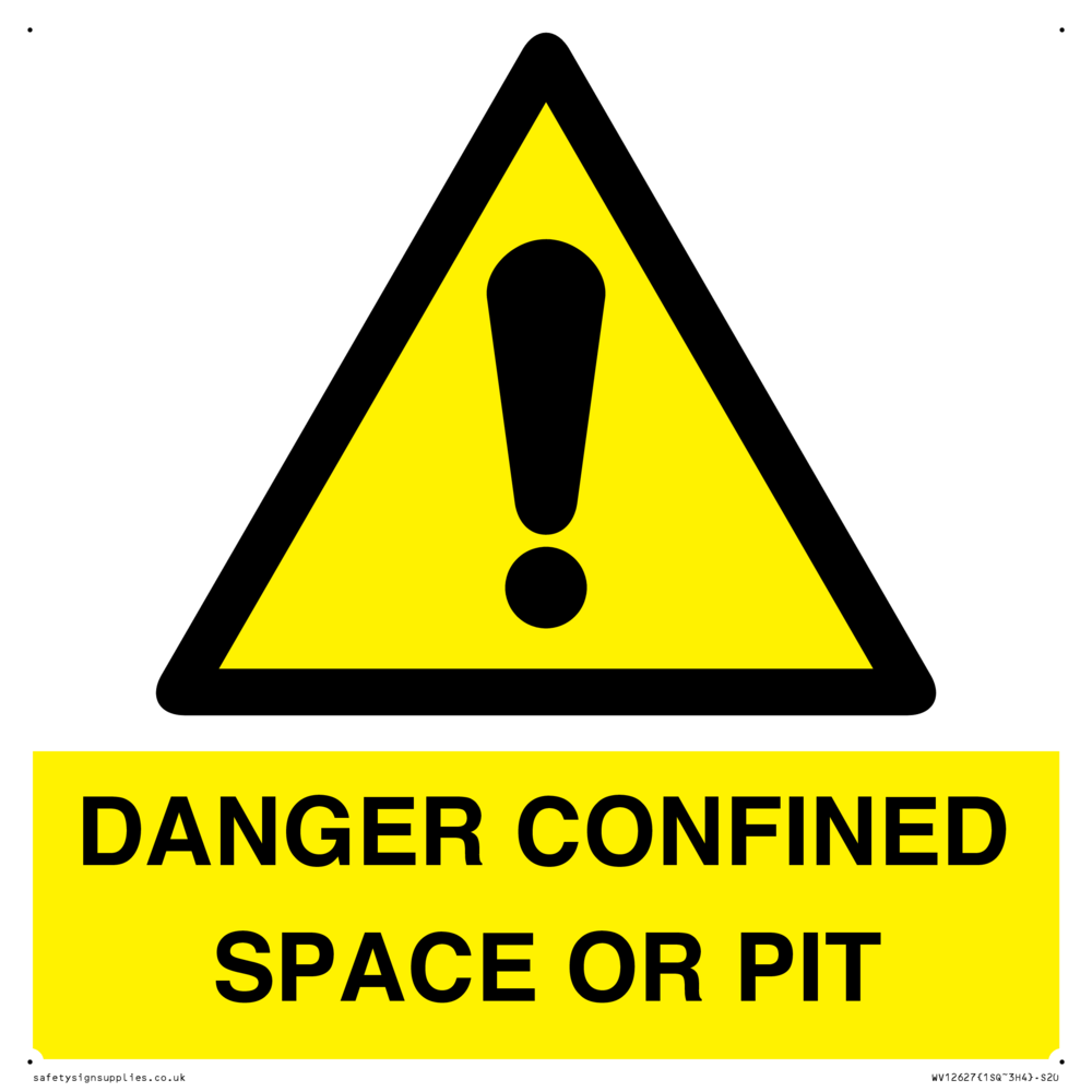 Sign Text: DANGER CONFINED SPACE OR PIT