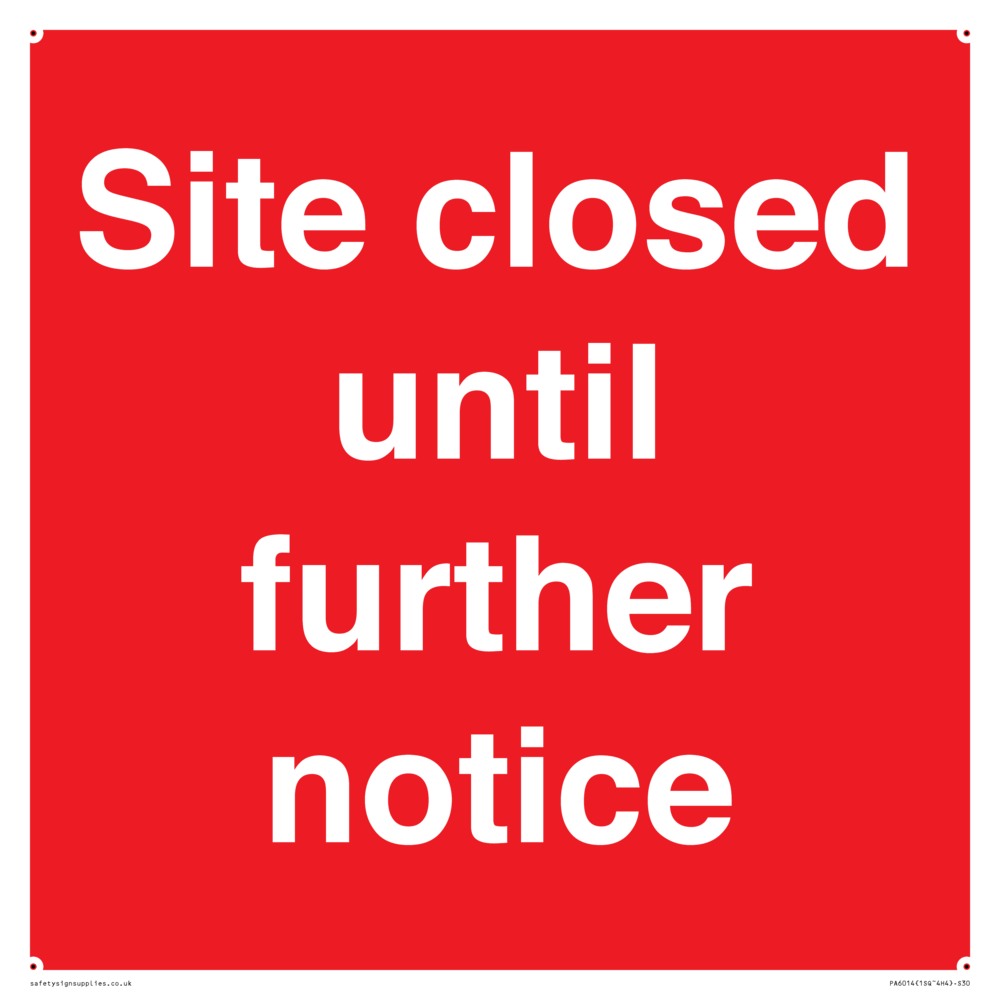 Sign Text: Site closed until further notice