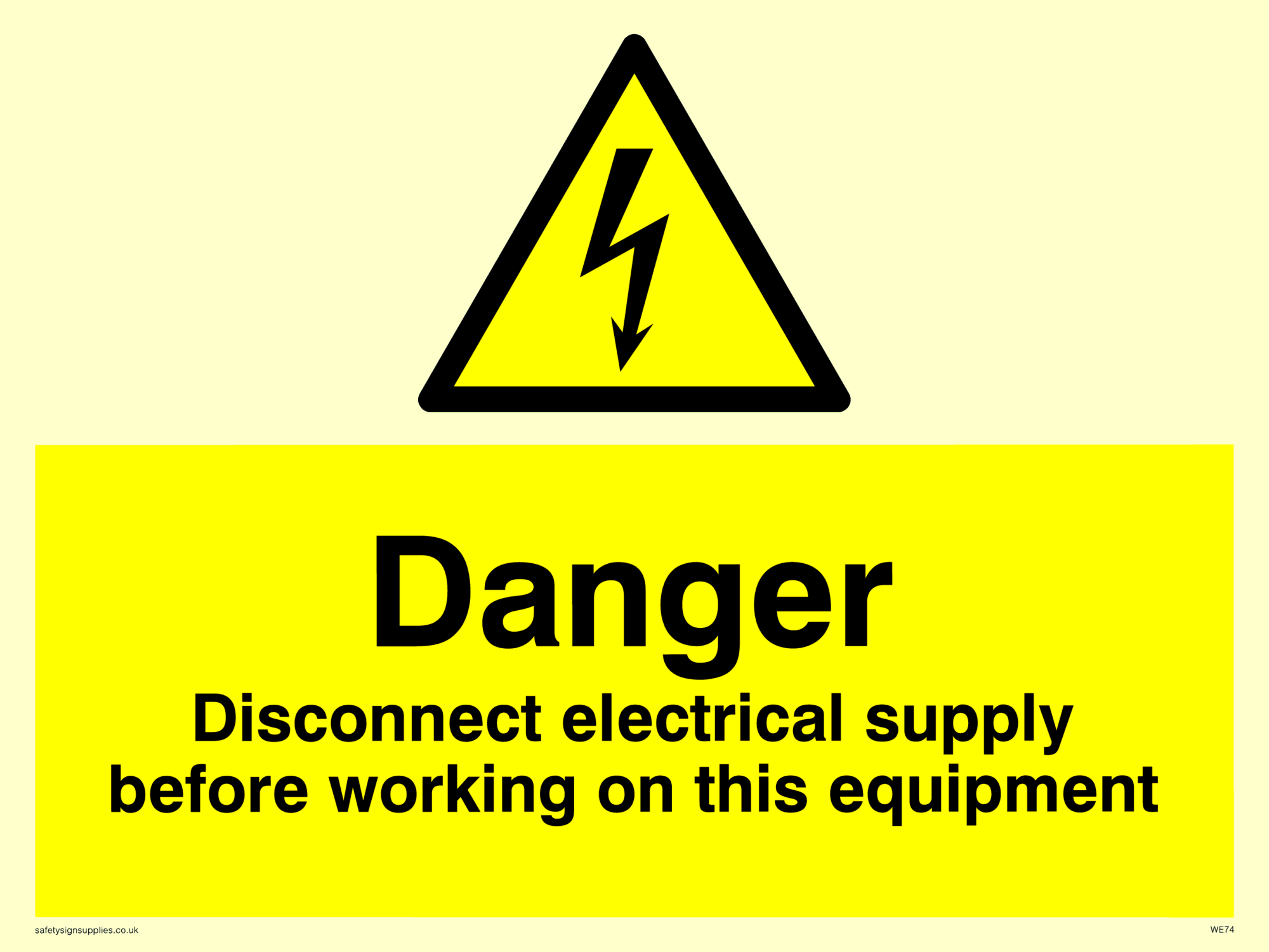 This sign contains an electrical warning symbol. Lightning flash in black on yellow warning triangle with black border.