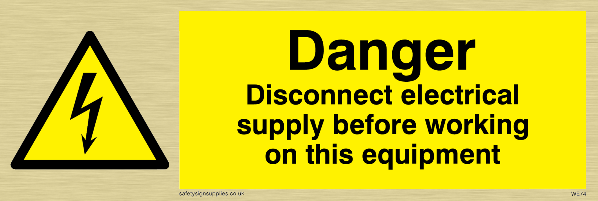 Sign Text: Danger Disconnect electrical supply before working on this equipment