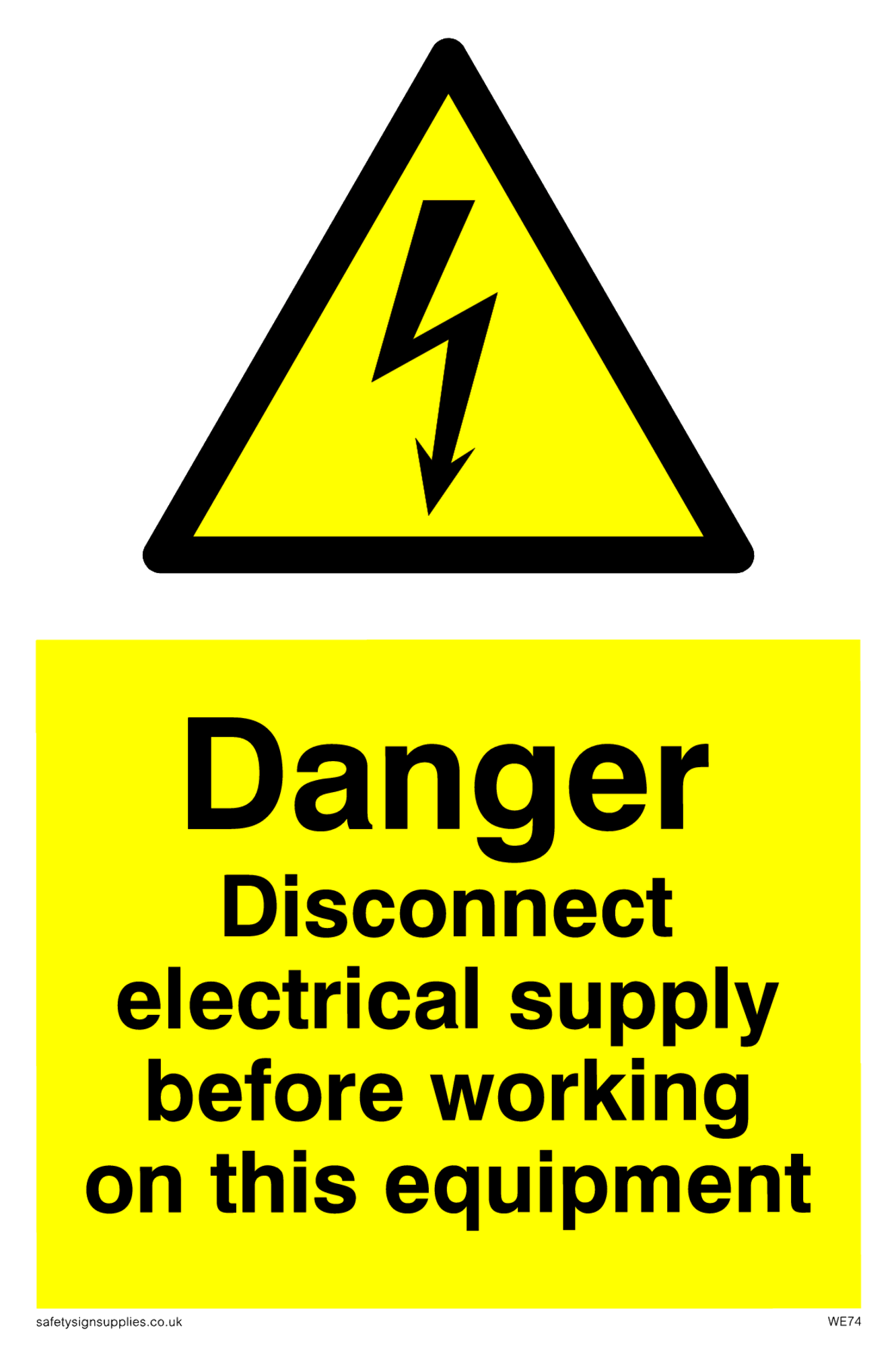 Electrical Sign are used to indicate hazards or provisions associated with electrical equipment or supply. Machinery Sign are used to show issues, actions or risks from machines or moving parts. This sign is small.