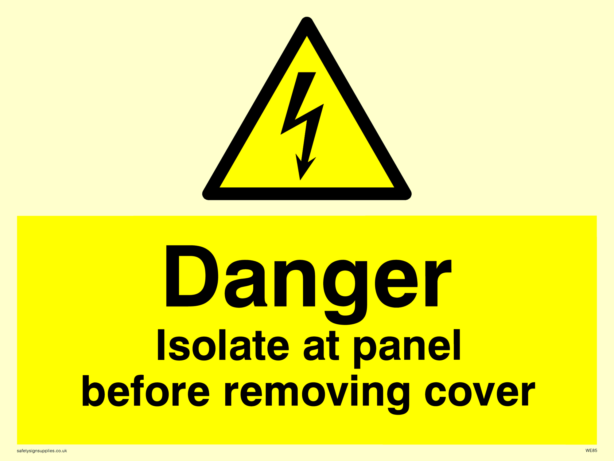 This sign contains an electrical warning symbol. Lightning flash in black on yellow warning triangle with black border.