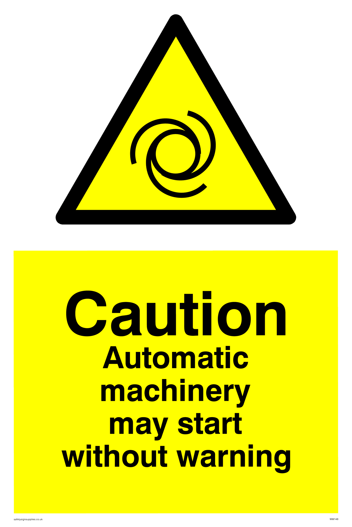 Machinery Sign are used to show issues, actions or risks from machines or moving parts. This sign is medium sized. This sign is approximately equivalent to A4 paper size.