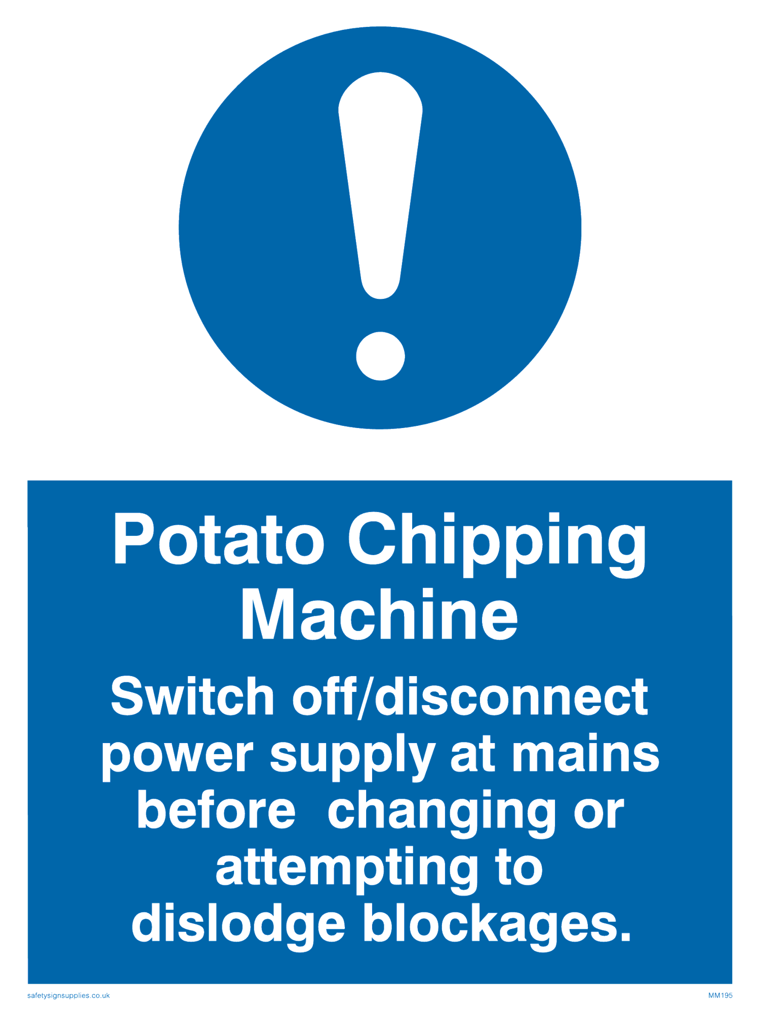 This sign contains a general Mandatory Exclamation Symbol - exclamation mark in white on blue circle background.