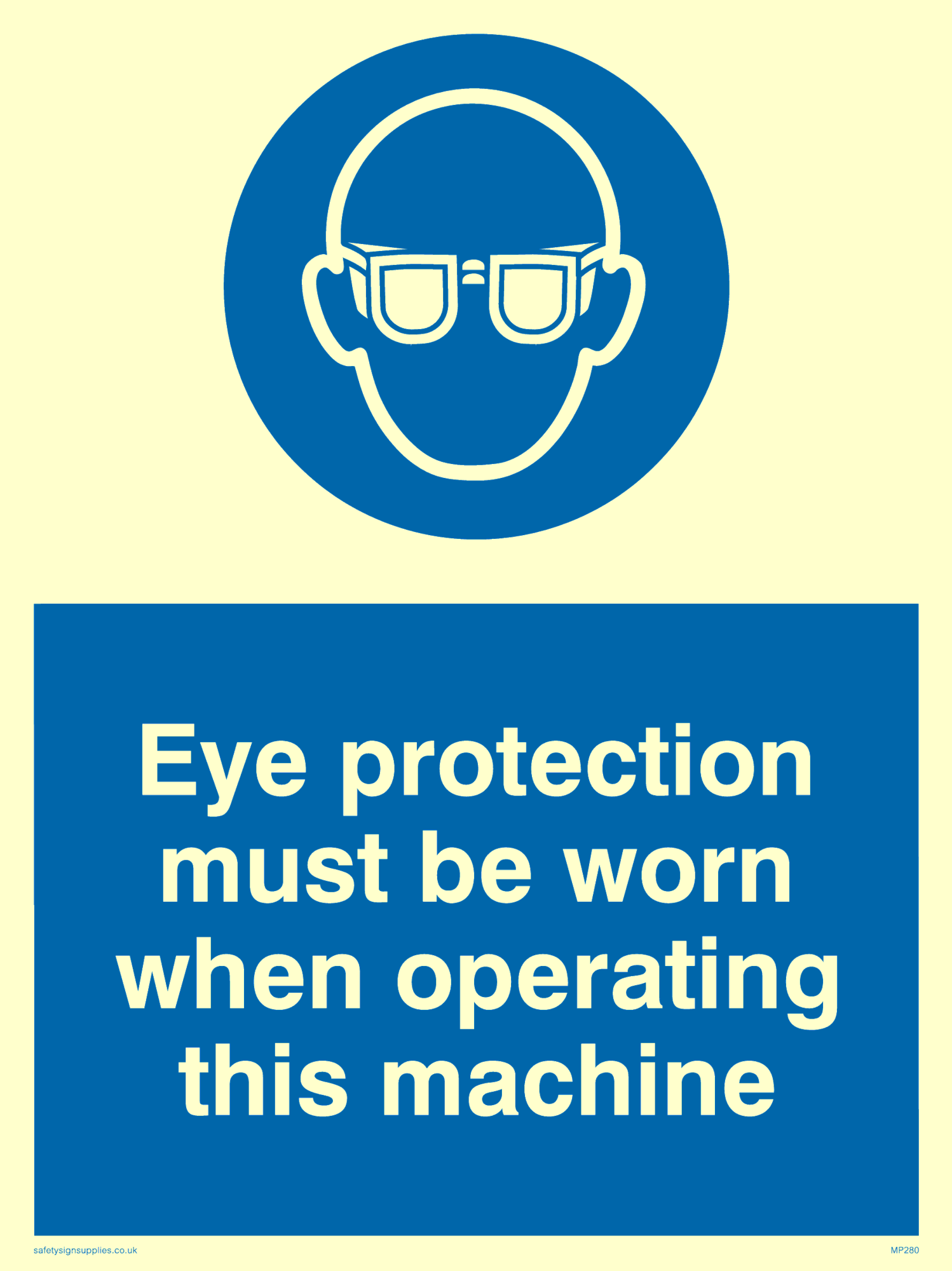 Sign Text: Eye protection must be worn when operating this machine