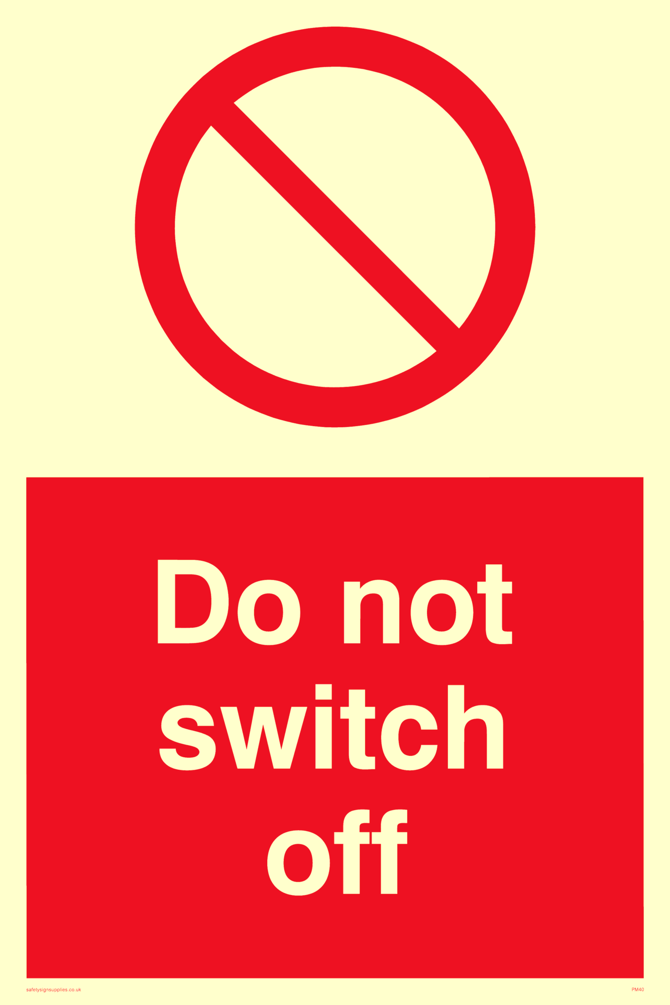 This product is a prohibition safety sign. This type of sign tells you something you must not do.