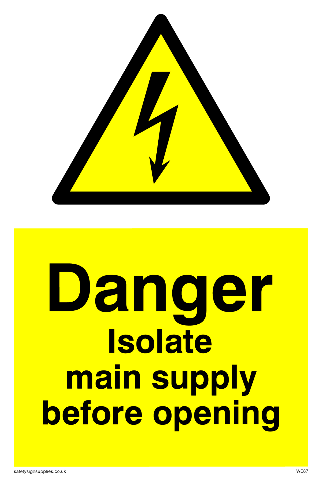 Electrical Sign are used to indicate hazards or provisions associated with electrical equipment or supply. Machinery Sign are used to show issues, actions or risks from machines or moving parts. This sign is small. This sign is approximately equivalent to A6 paper size. Signs in this range are from our standard range.