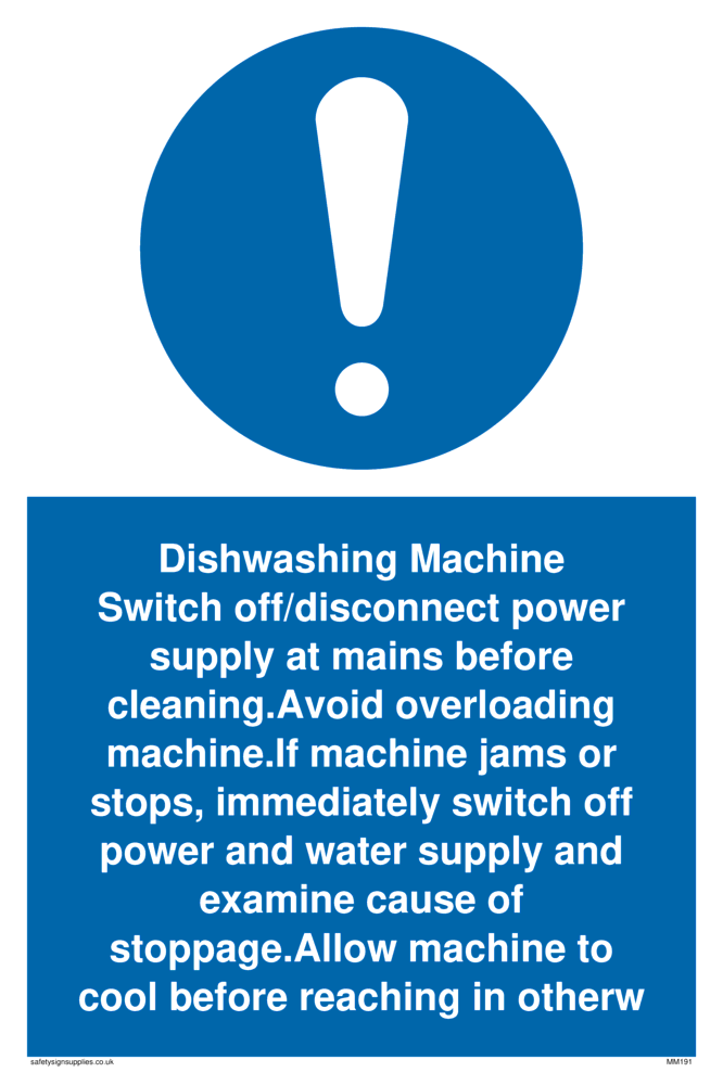 Hygiene / Health signs are often used in the catering industry to indicate measures required to ensure a hygienic environment. Machinery Sign are used to show issues, actions or risks from machines or moving parts.