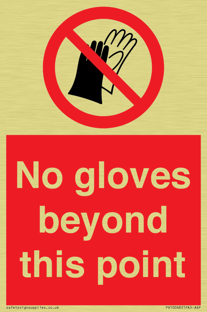 Sign Text: No gloves beyond this point