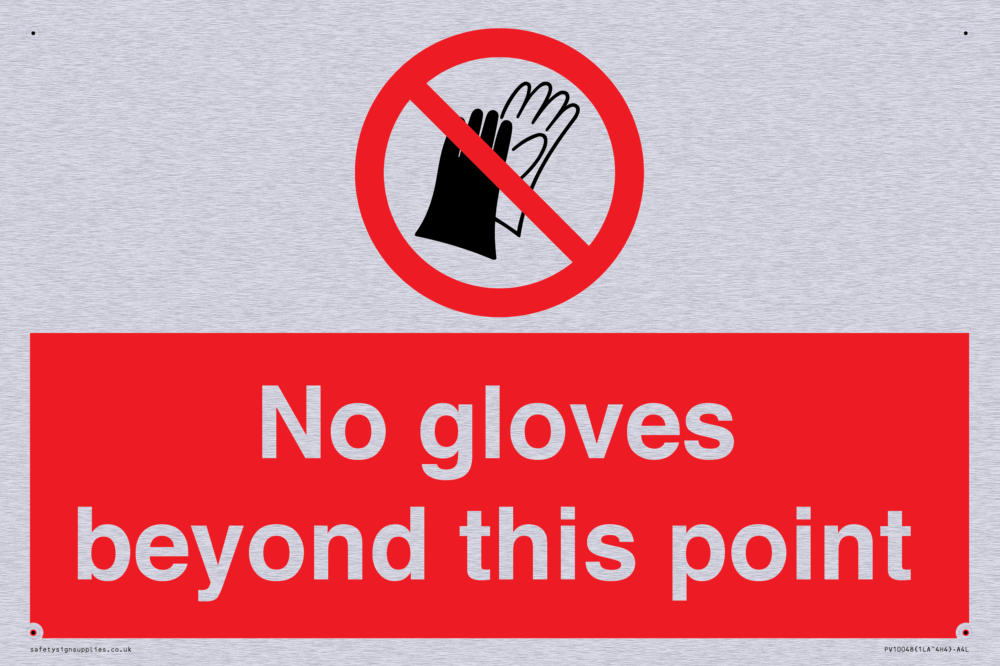 Sign Text: No gloves beyond this point