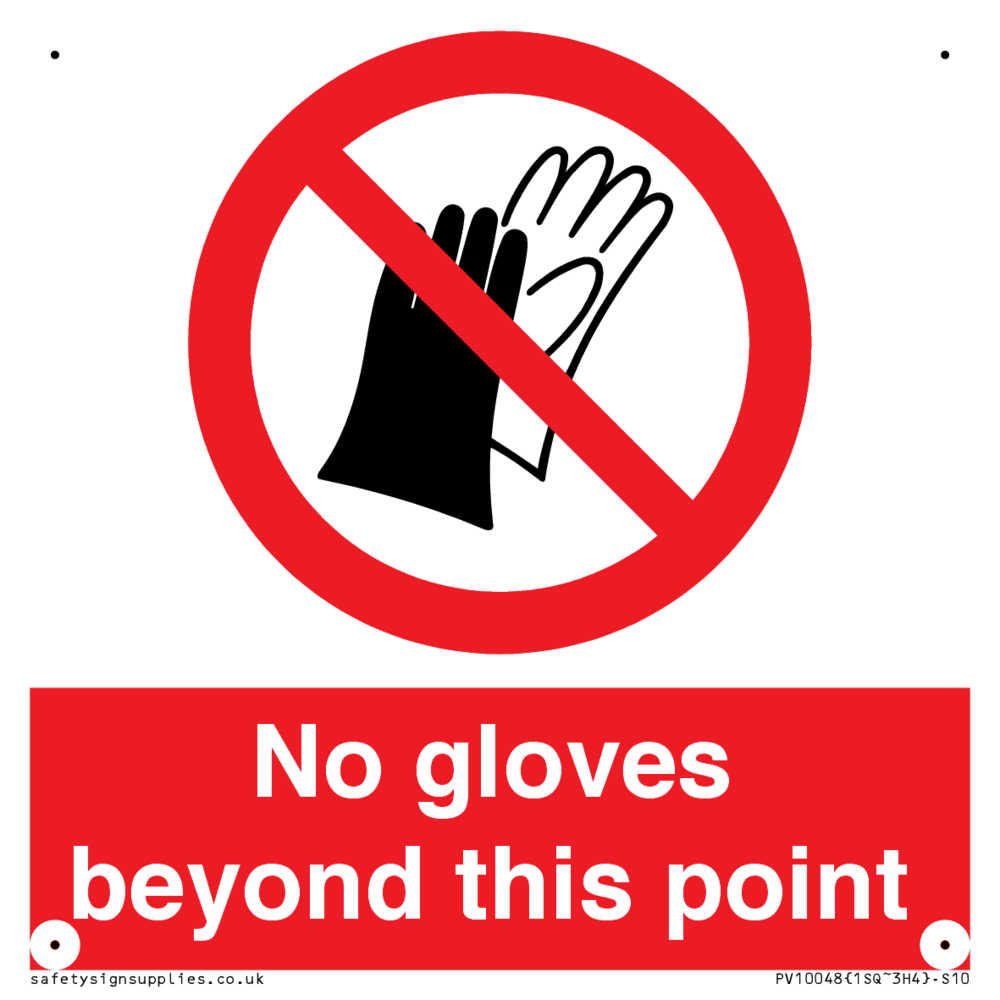 Sign Text: No gloves beyond this point
