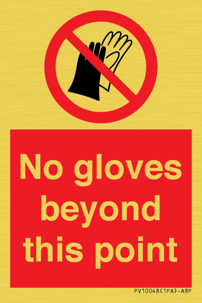 Sign Text: No gloves beyond this point