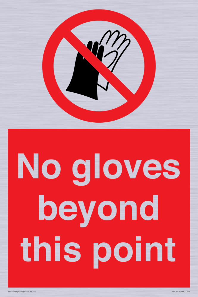 Sign Text: No gloves beyond this point