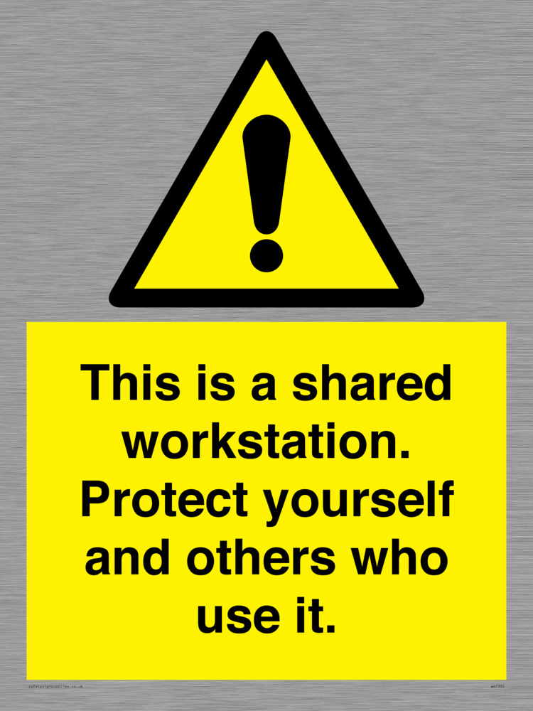Sign Text: This is a shared workstation. Protect yourself and others who use it.