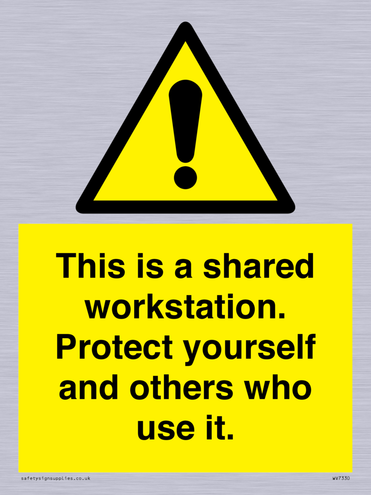 Sign Text: This is a shared workstation. Protect yourself and others who use it.