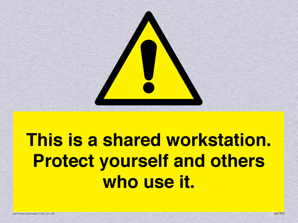 Sign Text: This is a shared workstation. Protect yourself and others who use it.