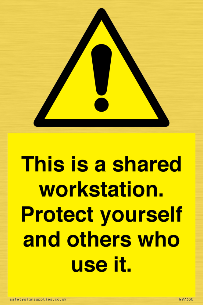 Sign Text: This is a shared workstation. Protect yourself and others who use it.