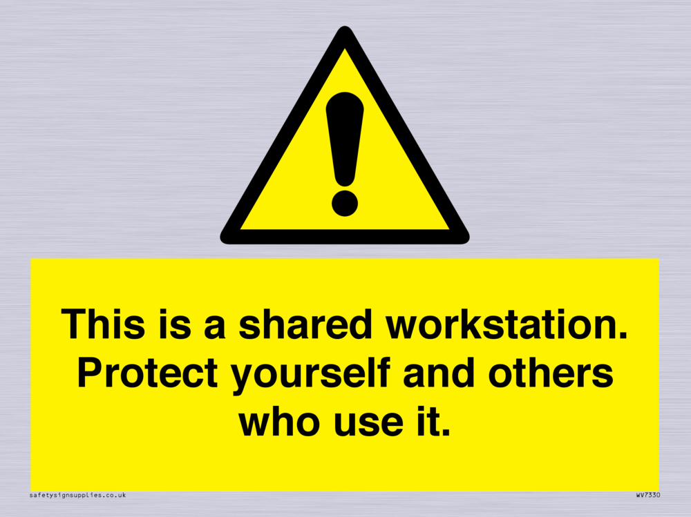 Sign Text: This is a shared workstation. Protect yourself and others who use it.