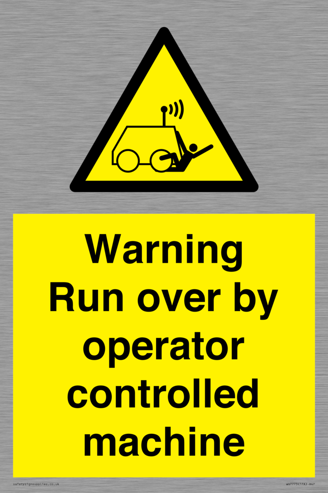 Sign Text: Warning run over by operator controlled machine