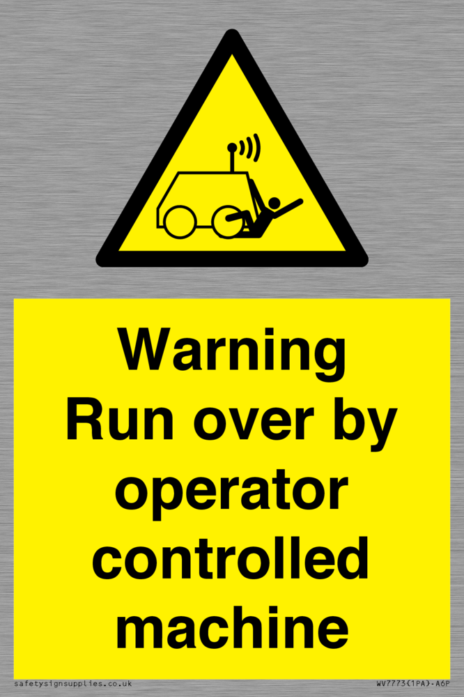Sign Text: Warning run over by operator controlled machine