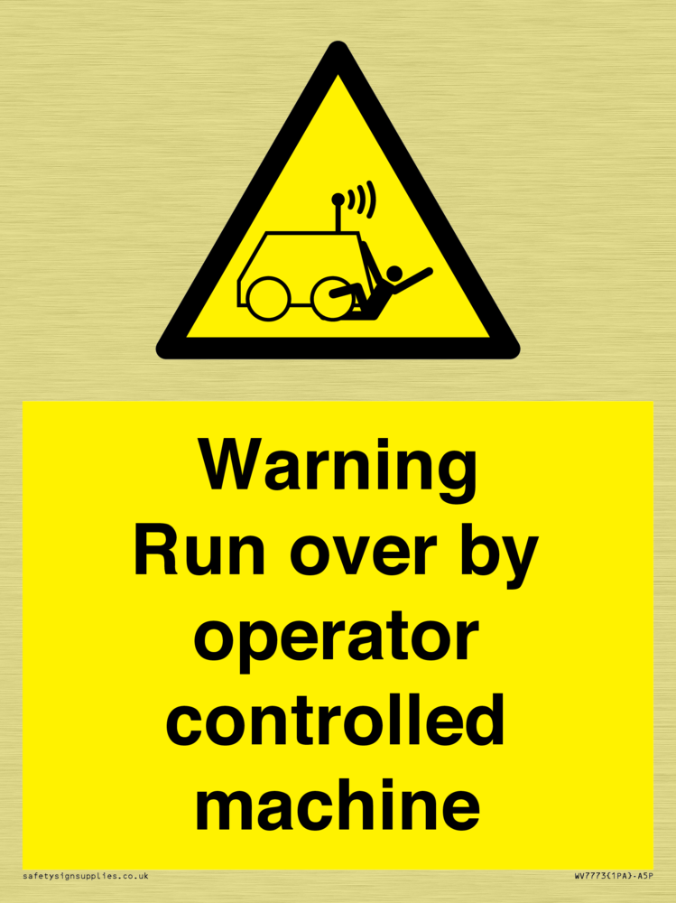 Sign Text: Warning run over by operator controlled machine