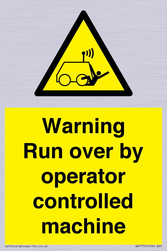 Sign Text: Warning run over by operator controlled machine