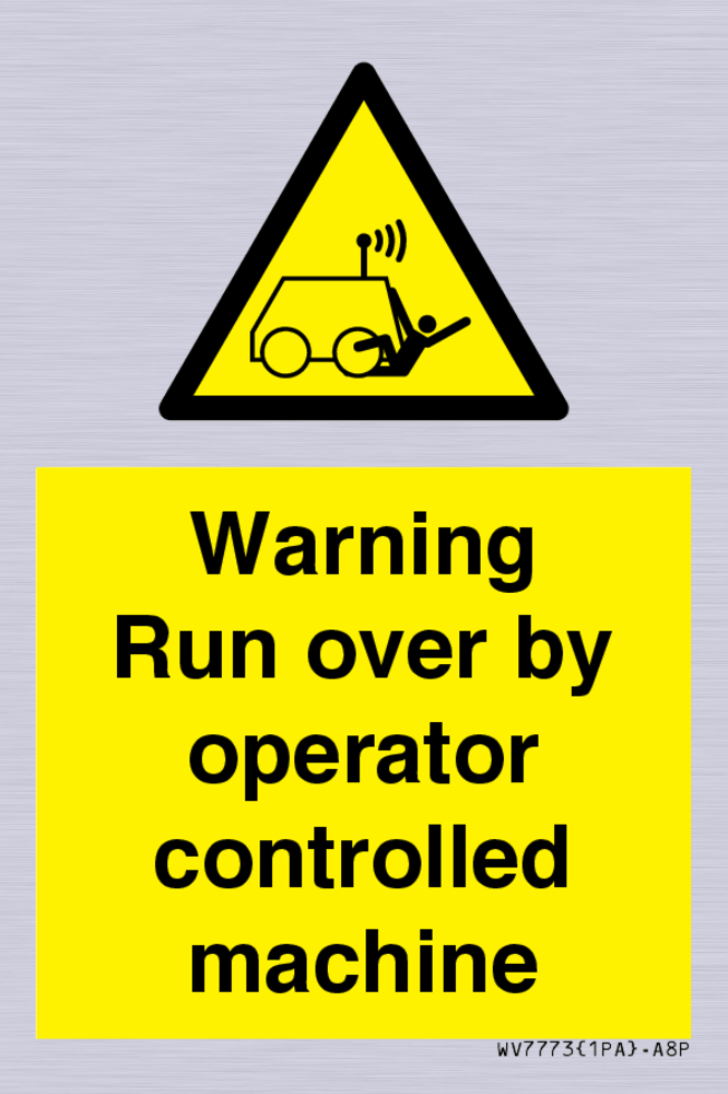 Sign Text: Warning run over by operator controlled machine