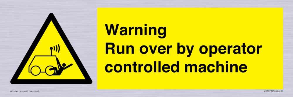 Sign Text: Warning run over by operator controlled machine