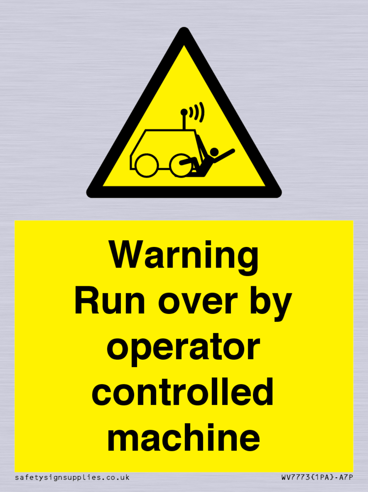 Sign Text: Warning run over by operator controlled machine