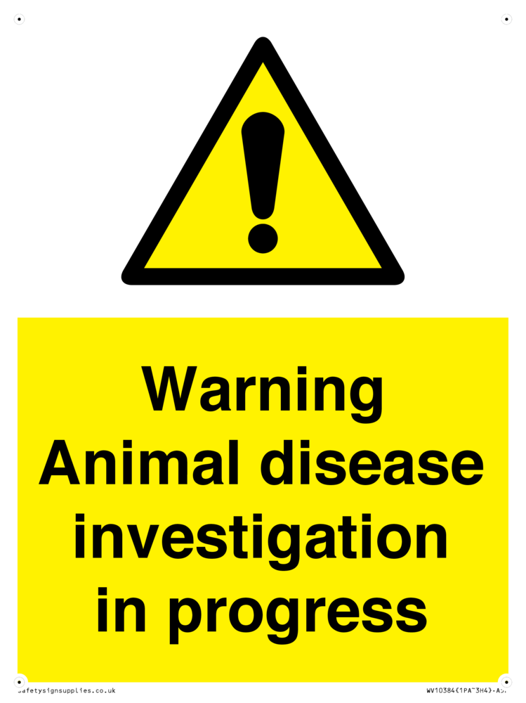 Sign Text: Warning Animal disease investigation in progress