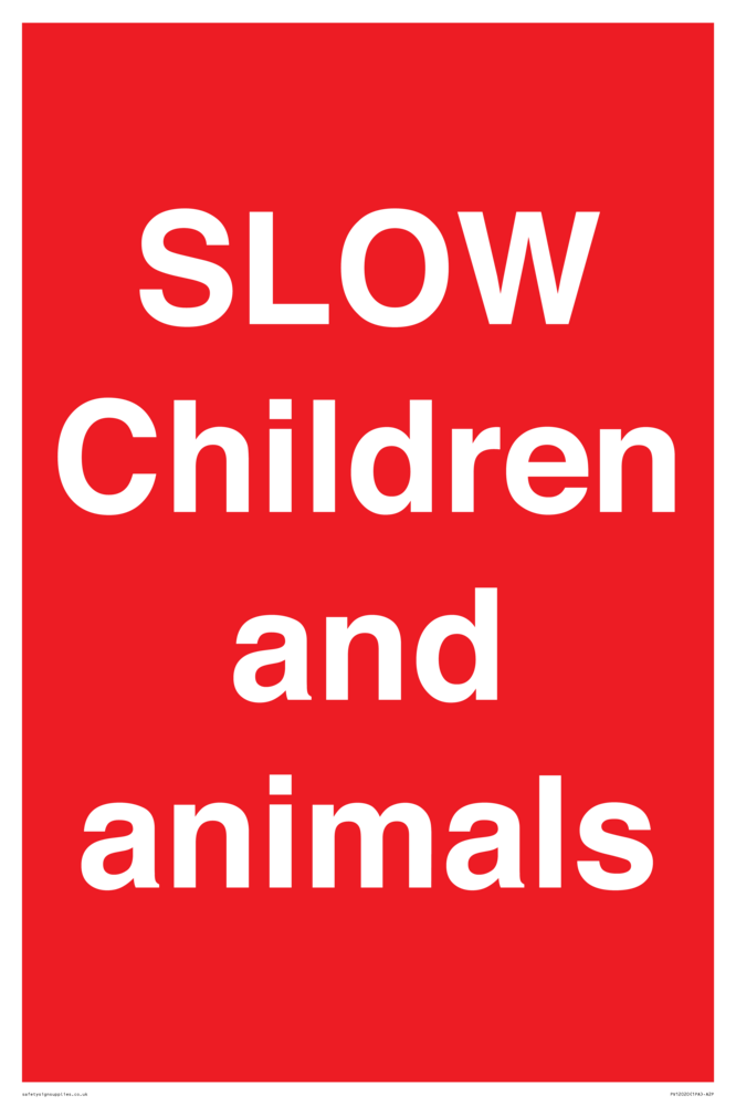 Sign Text: SLOWChildren and animals
