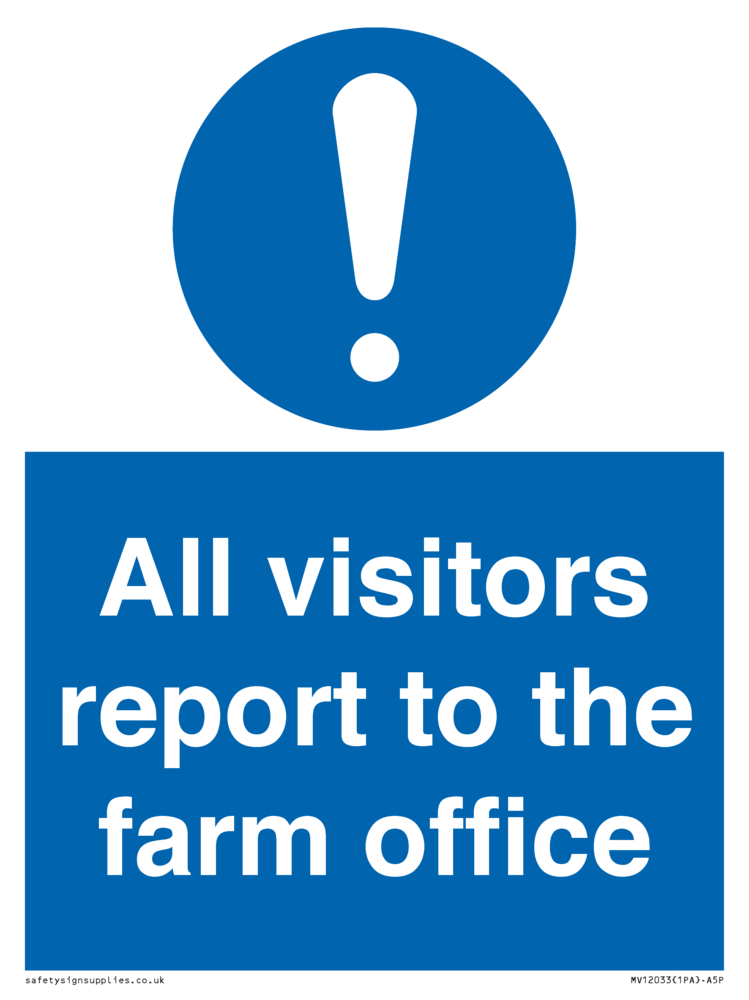 Sign Text: All visitors report to the farm office