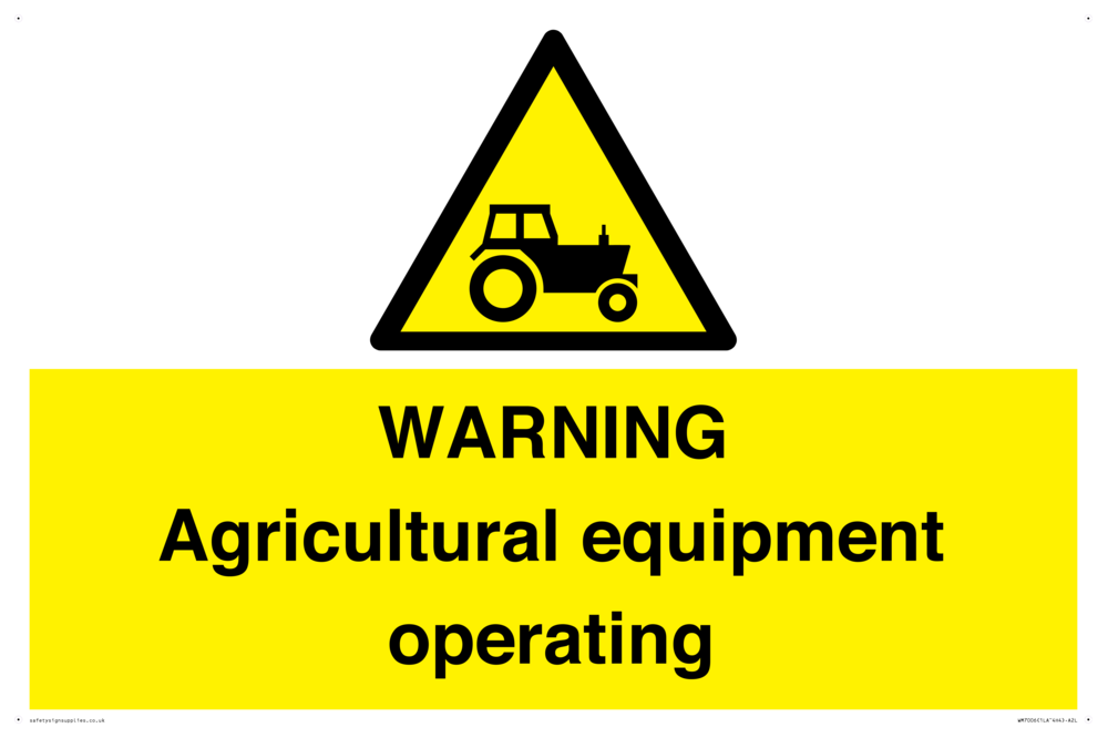 Sign Text: WARNING Agricultural equipment operating