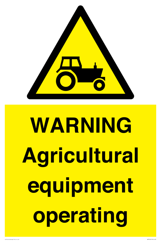 Sign Text: WARNING Agricultural equipment operating