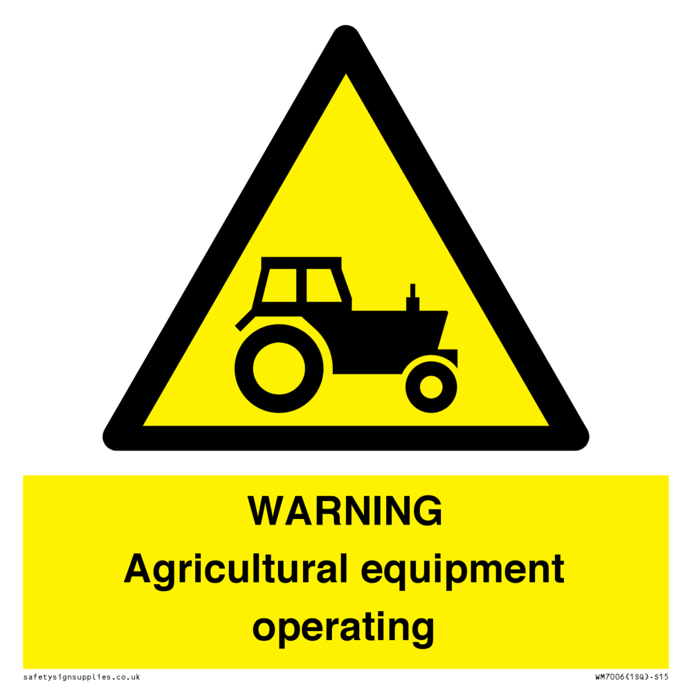 Sign Text: WARNING Agricultural equipment operating