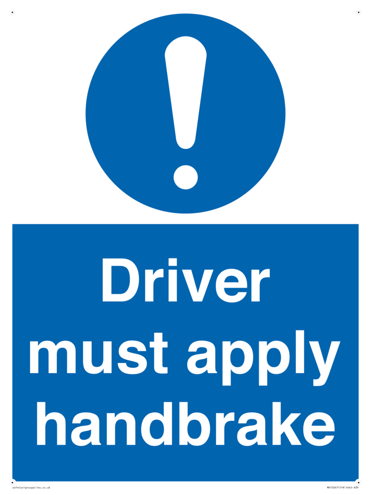 Sign Text: Driver must apply handbrake