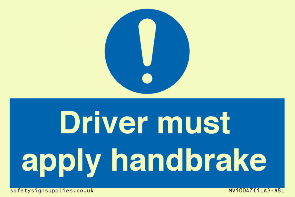 Sign Text: Driver must apply handbrake