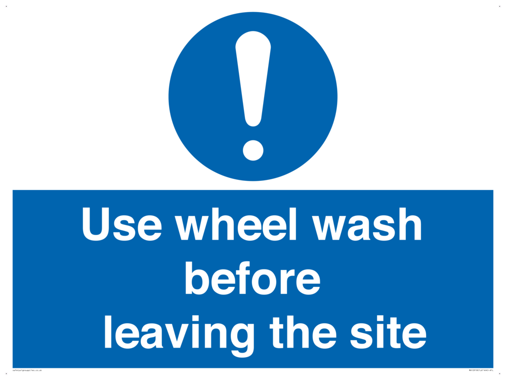 Sign Text: Use wheel wash before leaving the site
