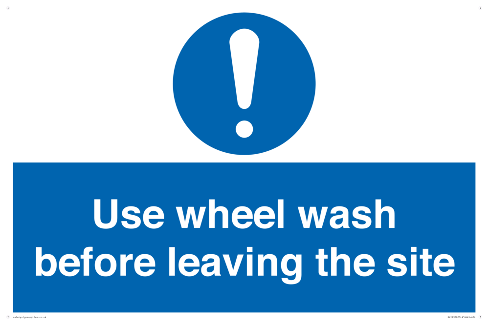 Sign Text: Use wheel wash before leaving the site