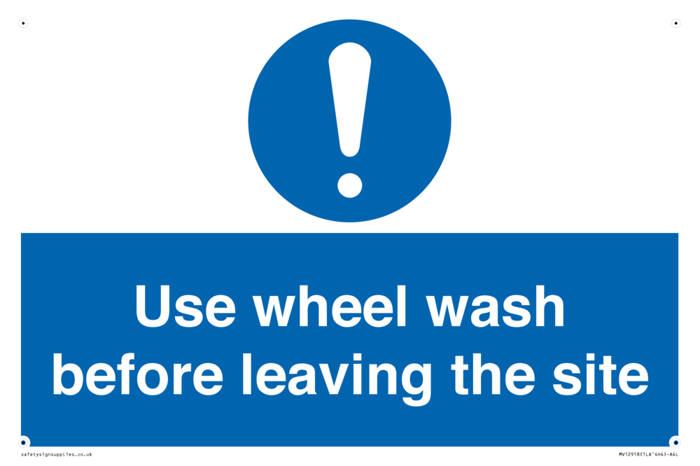 Sign Text: Use wheel wash before leaving the site