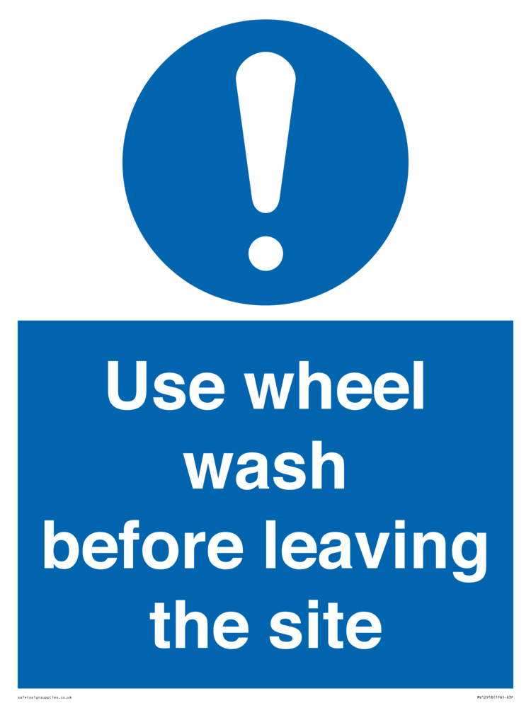 Sign Text: Use wheel wash before leaving the site