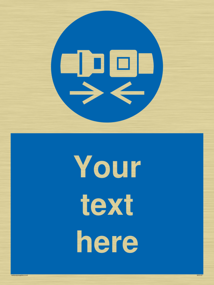 This sign contains a seatbelt must be worn symbol. Person wearing a seat belt in white on a blue circle. Suitable for fixing with screws. Suitable for hanging with a premium hanging kit.