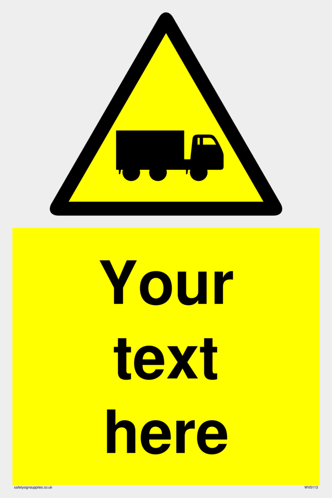 This sign features a Lorry or truck symbol. This can be used to warn people of where trucks are active or to provide instructions to lorry or truck drivers.