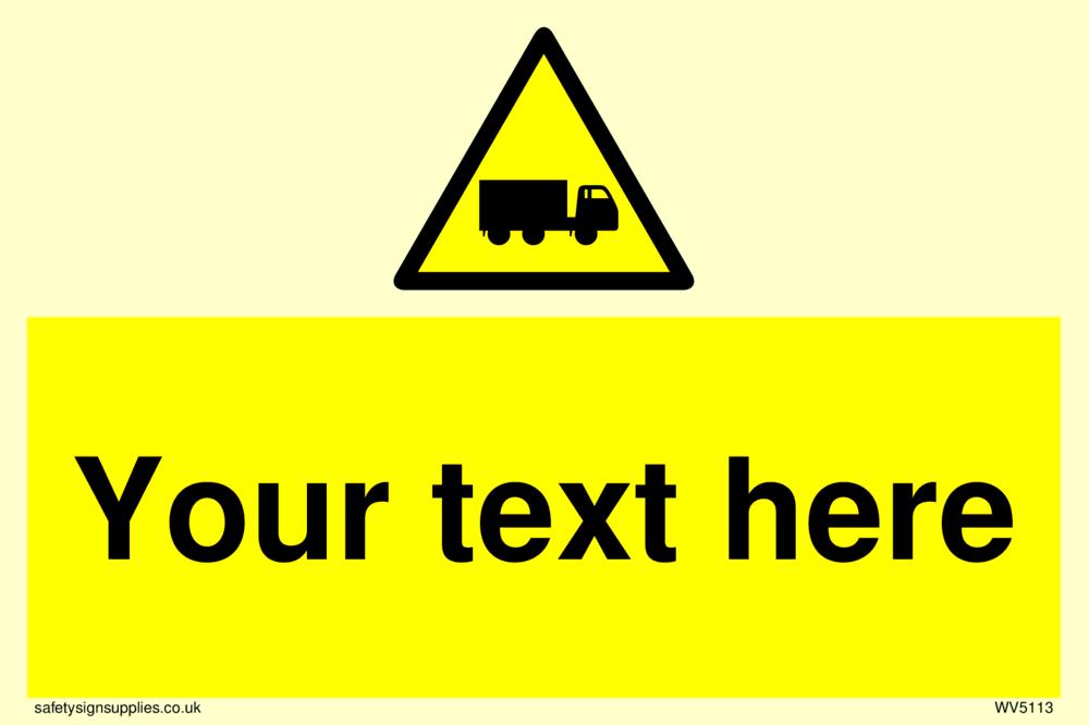 This sign features a Lorry or truck symbol. This can be used to warn people of where trucks are active or to provide instructions to lorry or truck drivers.