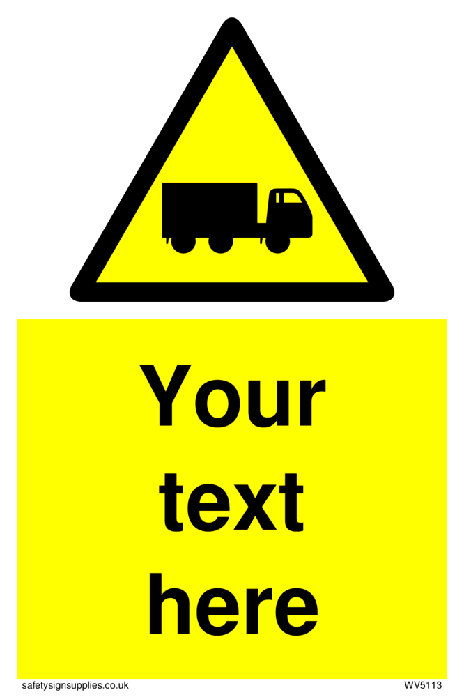 This sign features a Lorry or truck symbol. This can be used to warn people of where trucks are active or to provide instructions to lorry or truck drivers.