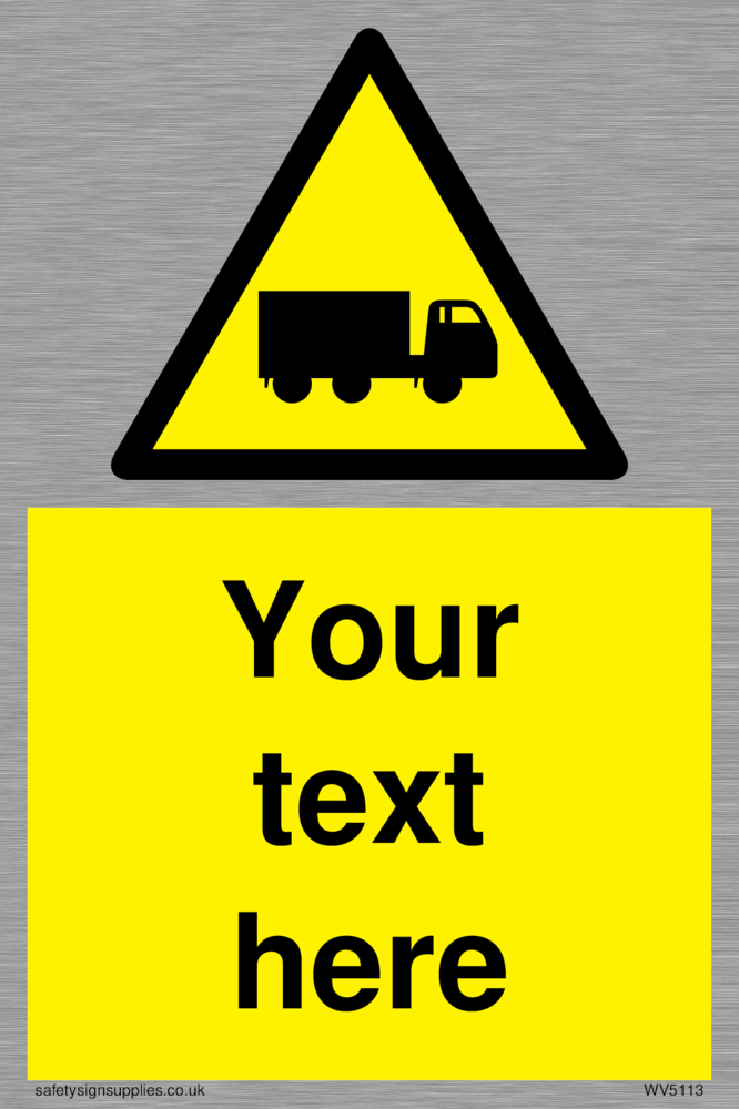 Custom Lorry Hazard Sign. Add your own custom text. Normal delivery times apply. Yellow Lorry Hazard Symbol. This symbol and sign layout complies with new EN7010 legislation that governs safety signs.