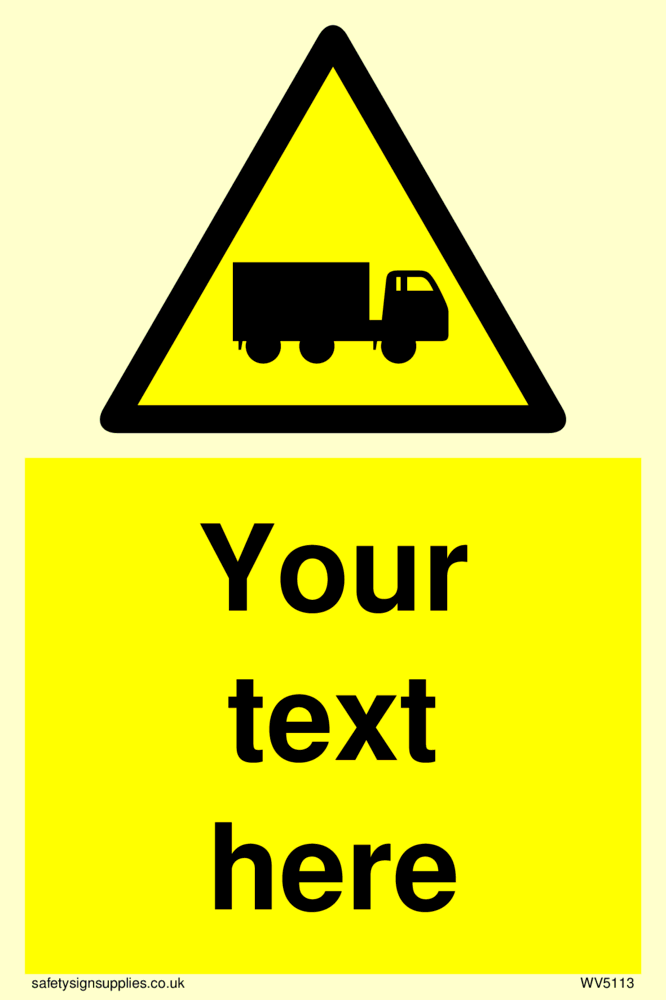 This sign features a Lorry or truck symbol. This can be used to warn people of where trucks are active or to provide instructions to lorry or truck drivers.