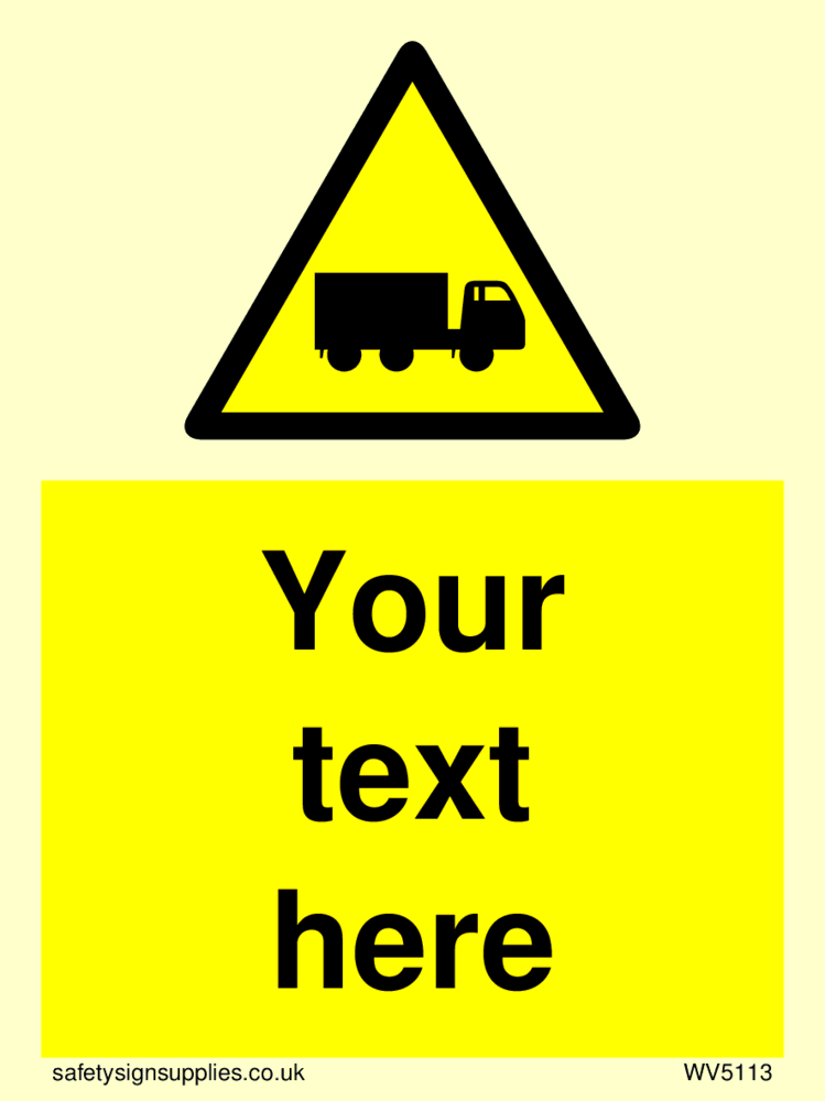 This sign features a Lorry or truck symbol. This can be used to warn people of where trucks are active or to provide instructions to lorry or truck drivers.
